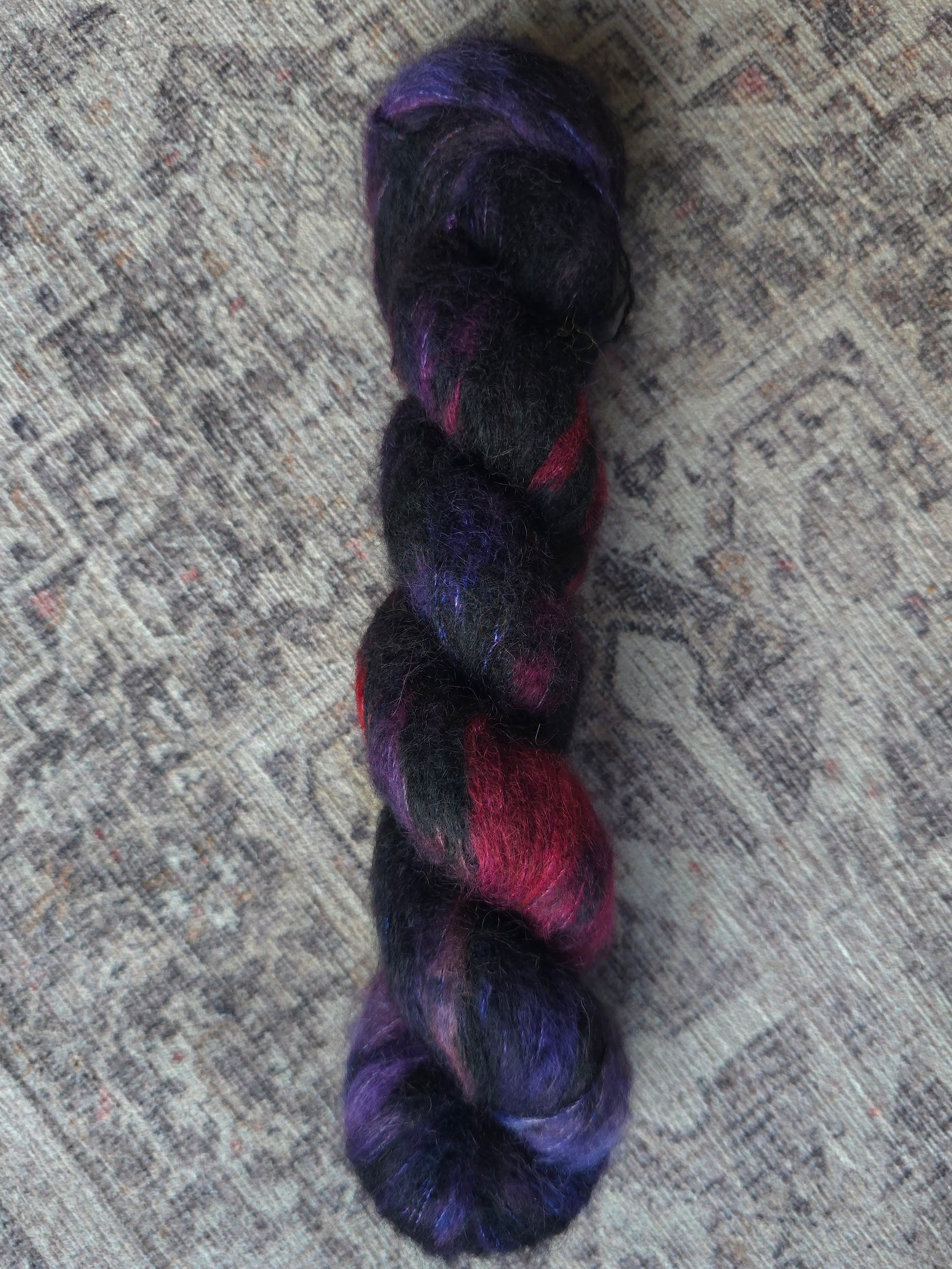Suri Silk Haze is an exquisitely plush and luxuriously soft lace weight yarn. It serves as an excellent alternative to mohair and showcases its full potential when paired with a fingering weight yarn, doubling its allure. When dyed with speckled colorways, Suri Silk Haze offers a unique outcome; the speckles disperse to create a gentle, ethereal flow, resulting in a captivating and dreamy effect.