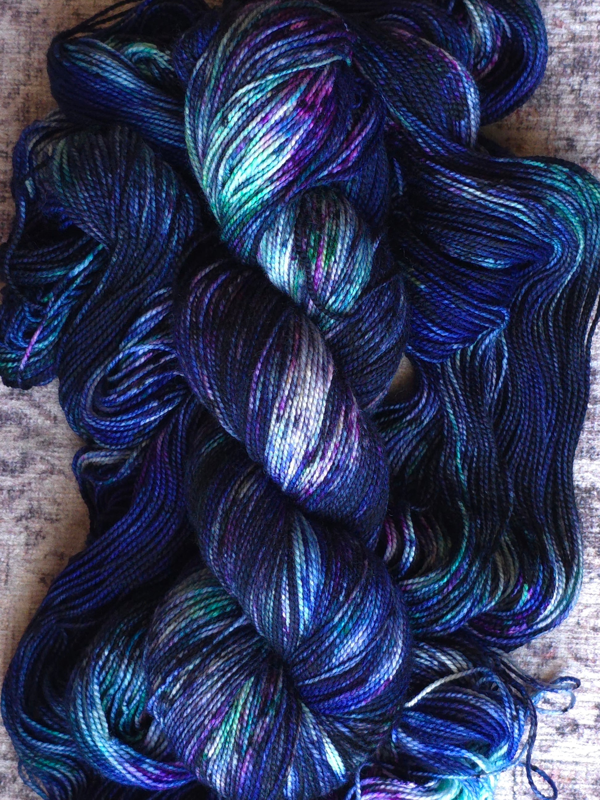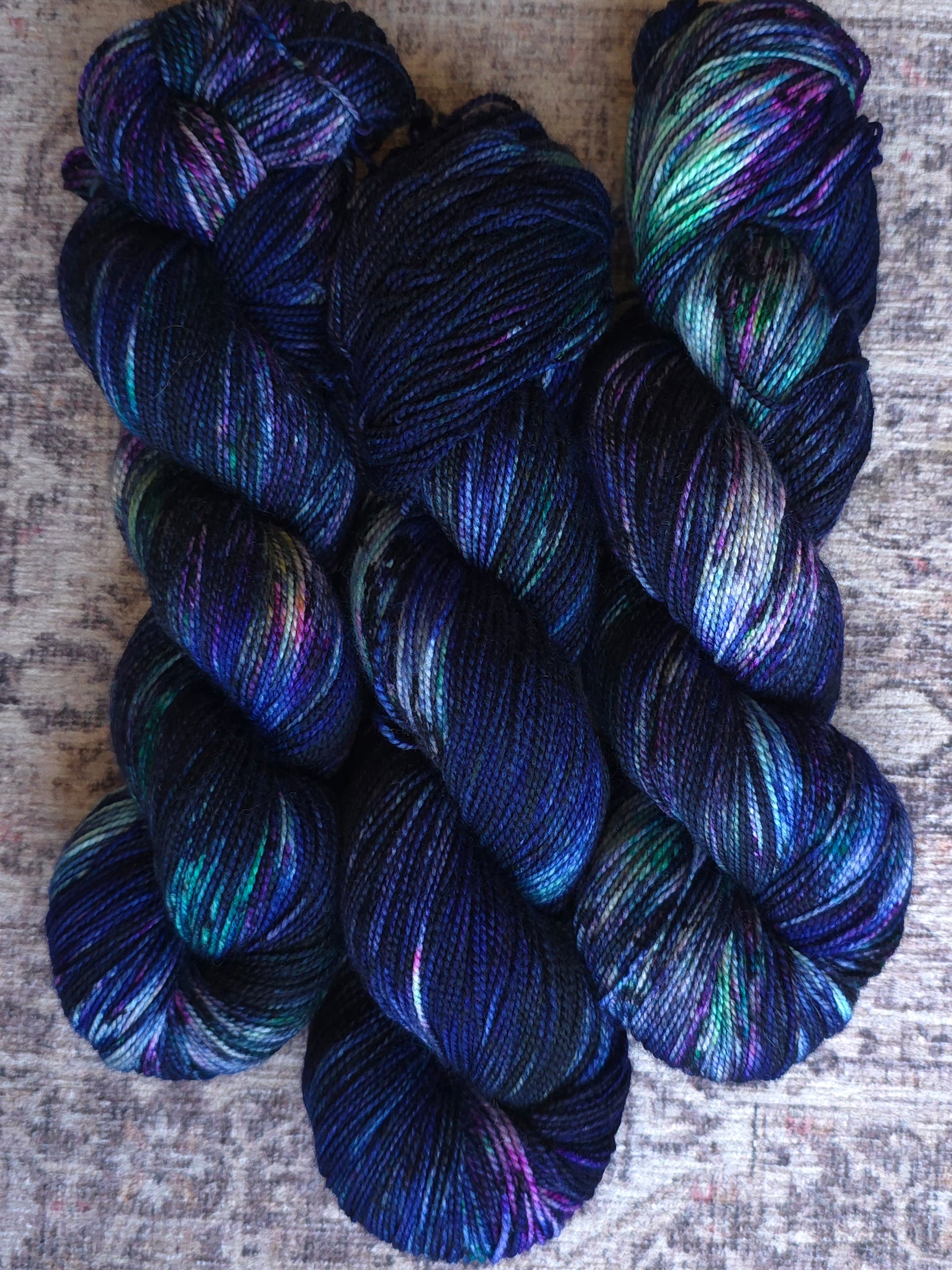 Deep midnight and navy blues swirl together like a starry night sky over Velaris, with soft flashes of yellow, purple, pink, and green peeking through. This colorway captures the wonder, strength, and quiet magic of the Court of Dreams—a place where starlight meets possibility.