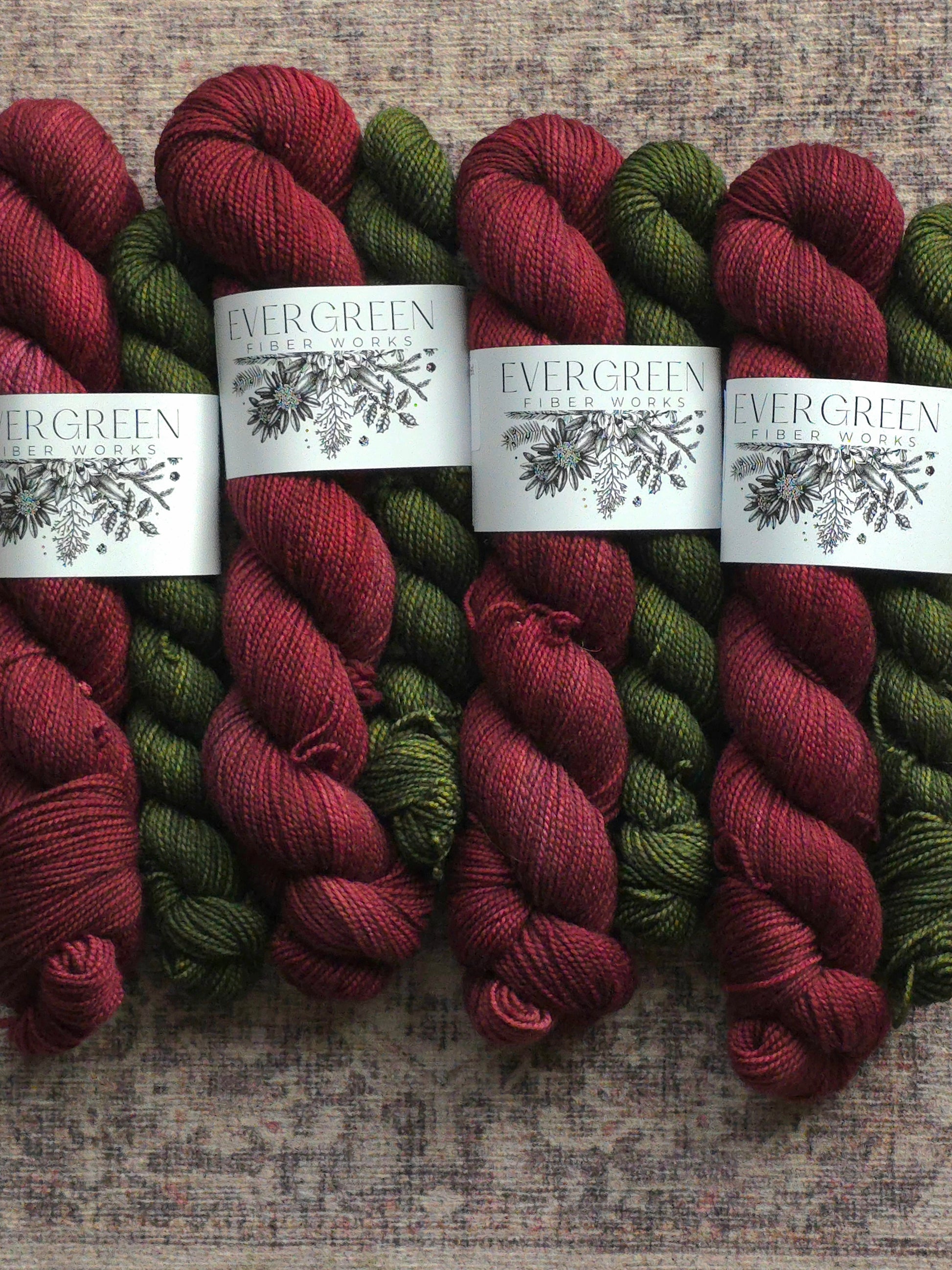 Nearly identical to Hemlock Sock, but with some nylon built in for durability. Twisty and fluffy this yarn makes the coziest socks, shawls, sweaters, hats and mitts. Also sold in 50g+20g sets as Bitsy Sock Sets.