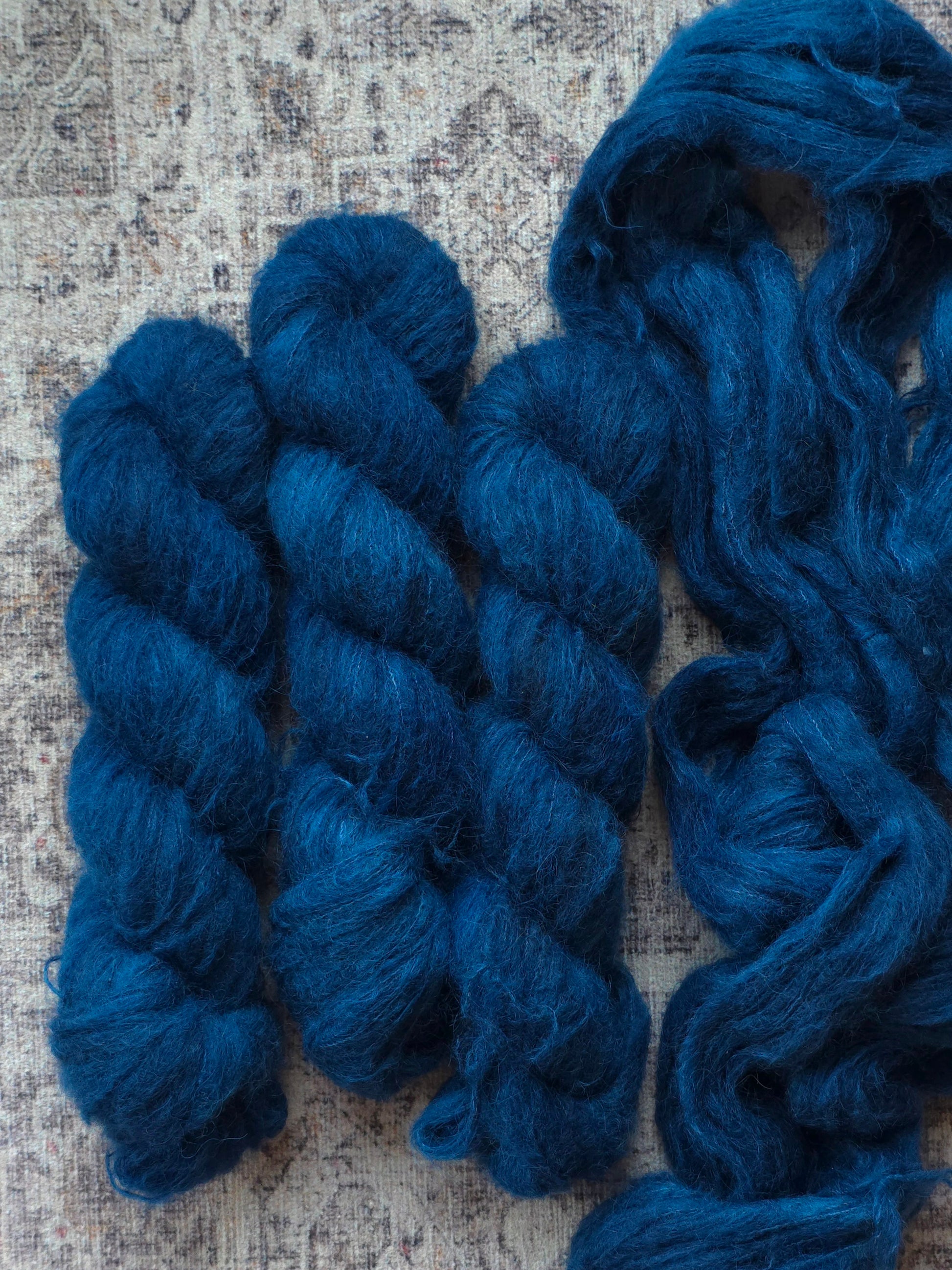 Suri Silk Haze is an exquisitely plush and luxuriously soft lace weight yarn. It serves as an excellent alternative to mohair and showcases its full potential when paired with a fingering weight yarn, doubling its allure. When dyed with speckled colorways, Suri Silk Haze offers a unique outcome; the speckles disperse to create a gentle, ethereal flow, resulting in a captivating and dreamy effect.