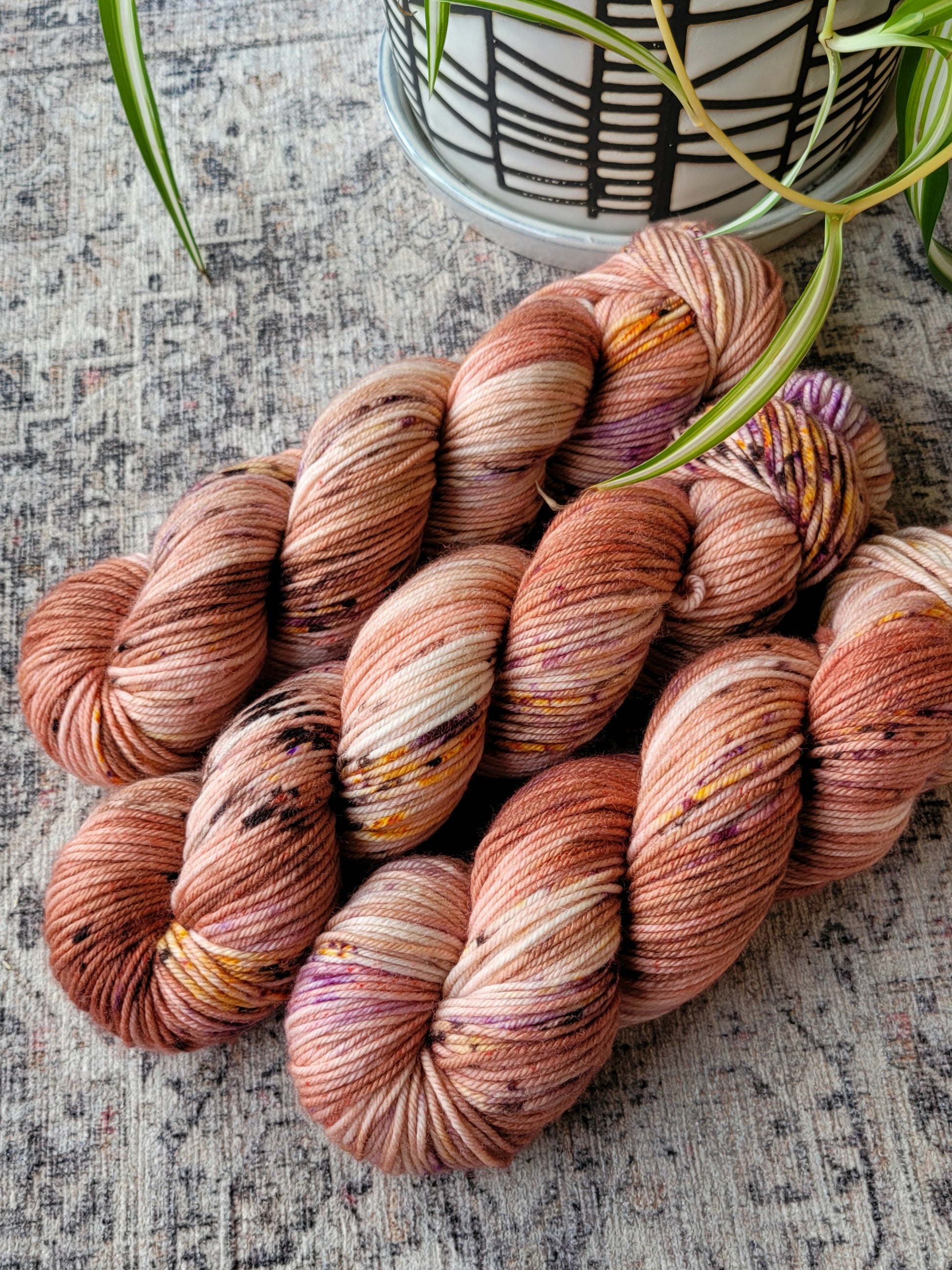 Peony is a soft peachy tonal pink with subtle purple and golden speckles.